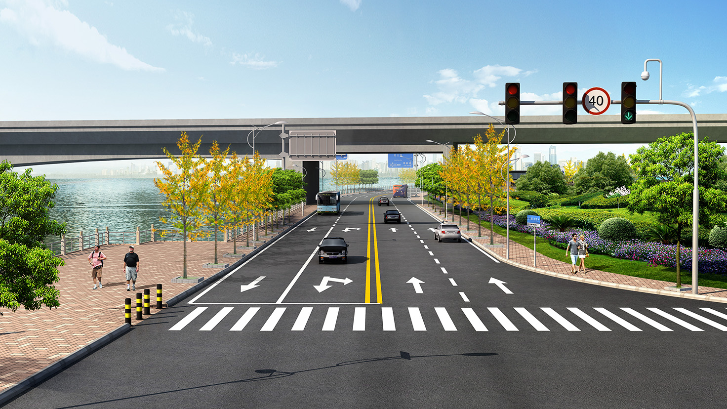 项目规模:城市次干道,设计速度40km/h,路宽40米,总长2.5km。