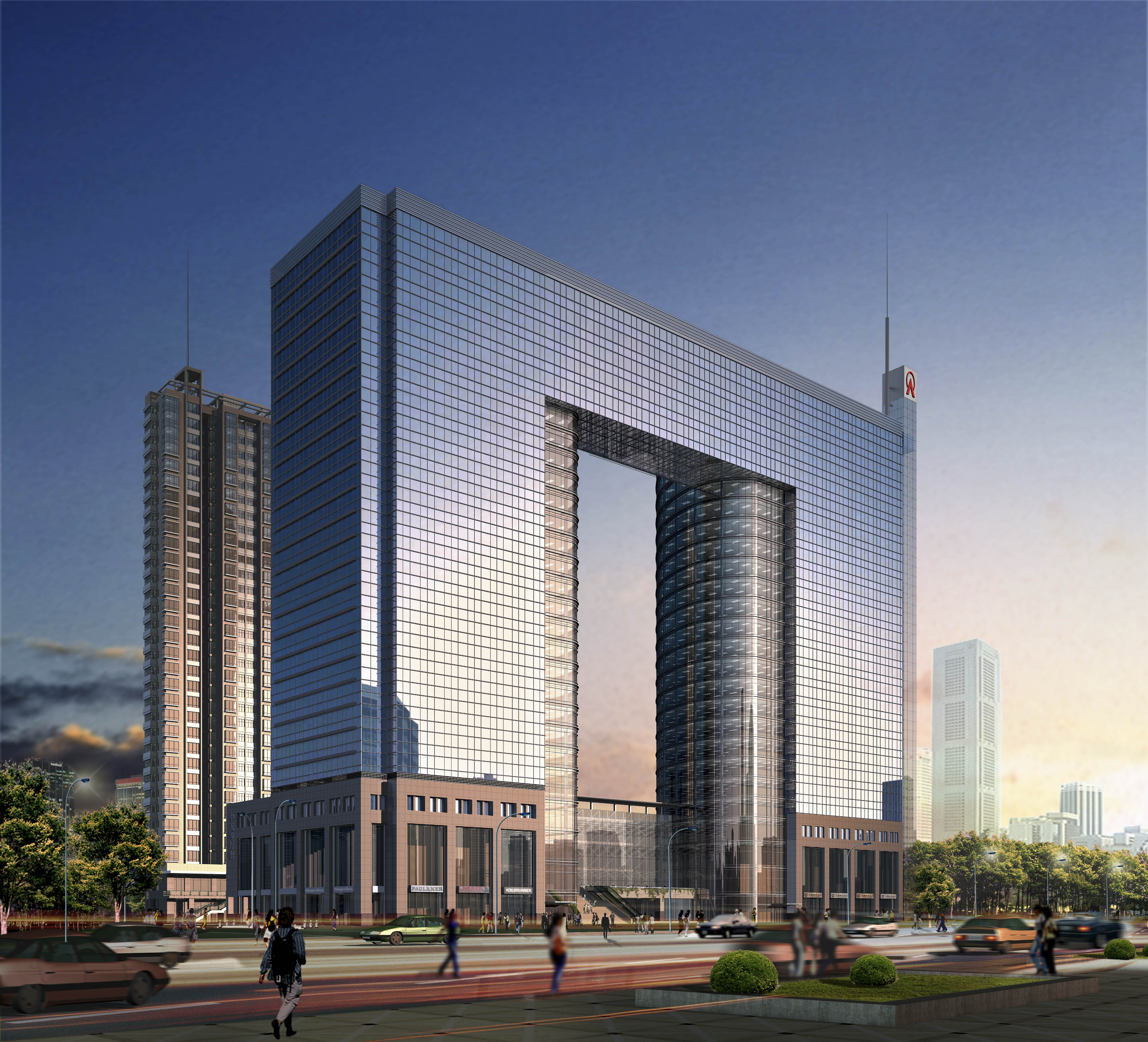设计背景:一类高层写字楼、裙房商场