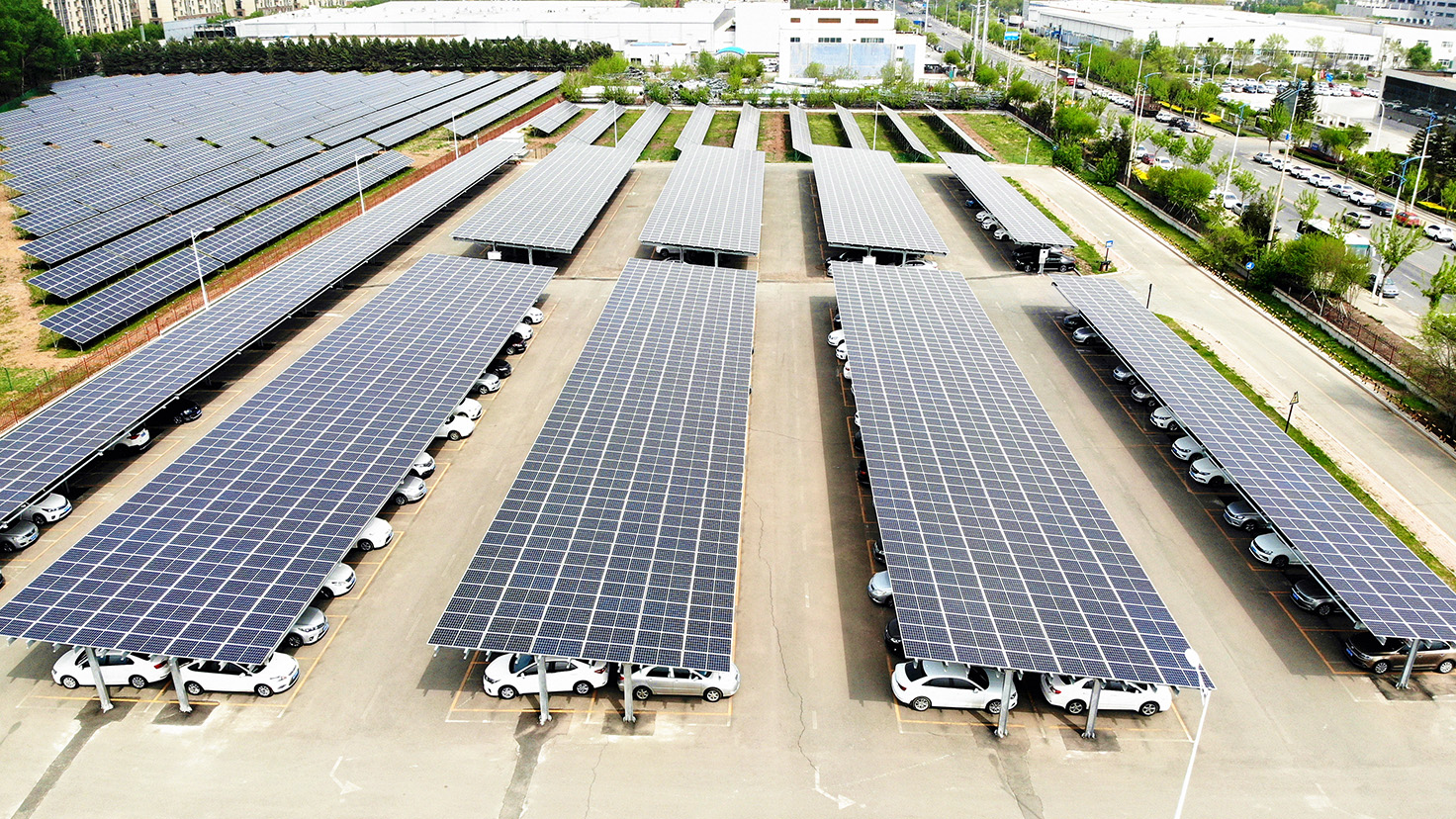 项目简介: 该项目位于吉林省长春市一汽丰田发动机有限公司,由长春华亨阳光太阳能发电有限公司投资建设,中机国际总承包,共由 9 个光伏车棚及地面电站组成。此项目采用“自发自用,余电不上网”的并网模式,每年能节约标准煤 1684 吨,年减排二氧化碳4037.39 吨,为企业的节能减排、降低生产成本、提升用能绿色度等多方面效果显著,具有良好的生态效益和社会效益。