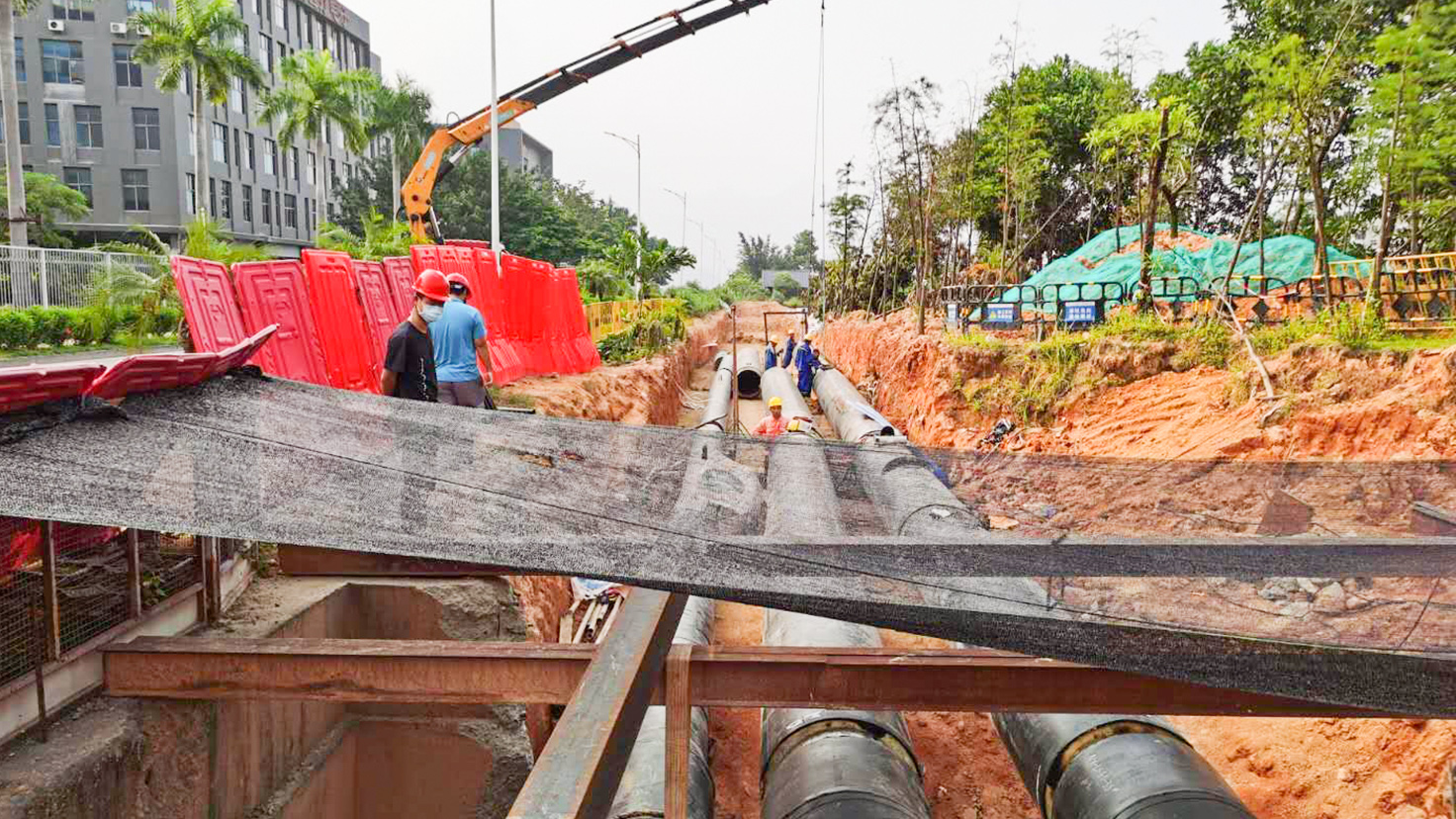 项目规模:从华电能源站建设至临松路、临惠路、荣田路、翠景路、兰和路等热用户,蒸汽管道管径DN450、DN300、DN200,冷水管道管径为DN700、DN500,主管道总长度18.3km