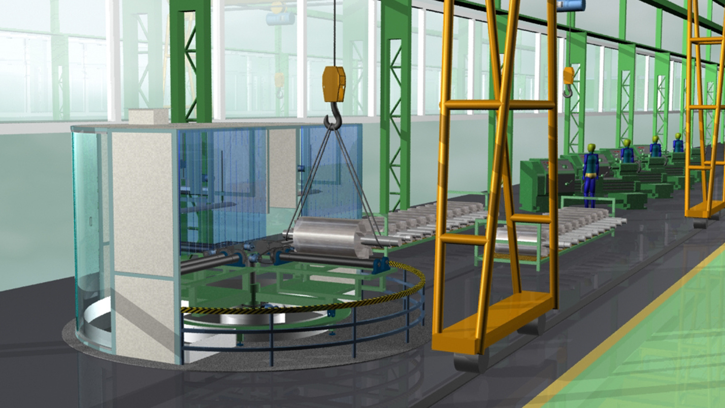 工程简介:依据电机转子加工后毛刺及粘连等特点,通过对电机转子表面进行加热、印酸去刺、碱中和及清洗以实现电机转子表面批量化去刺处理。根据工艺要求,转子酸洗机设置四个工位,分别为上下料、加热印酸、碱洗中和和水清洗和烘干工位,由机架、转盘机构、加热装置、印酸装置、印碱装置、洗刷装置、烘干装置、废液回收槽、去雾通风系统、储酸箱、储碱箱及控制系统组成。转子酸洗机设备尺寸:Φ4200×2400mm;加工转子范围:总长度范围:770mm~1670mm,最大外圆直径:210mm~445mm(H225-355),铁心部分长度≤700mm,重量<400kg。电机转子经转子酸洗机酸洗后装机,电机效率提升0.2%。